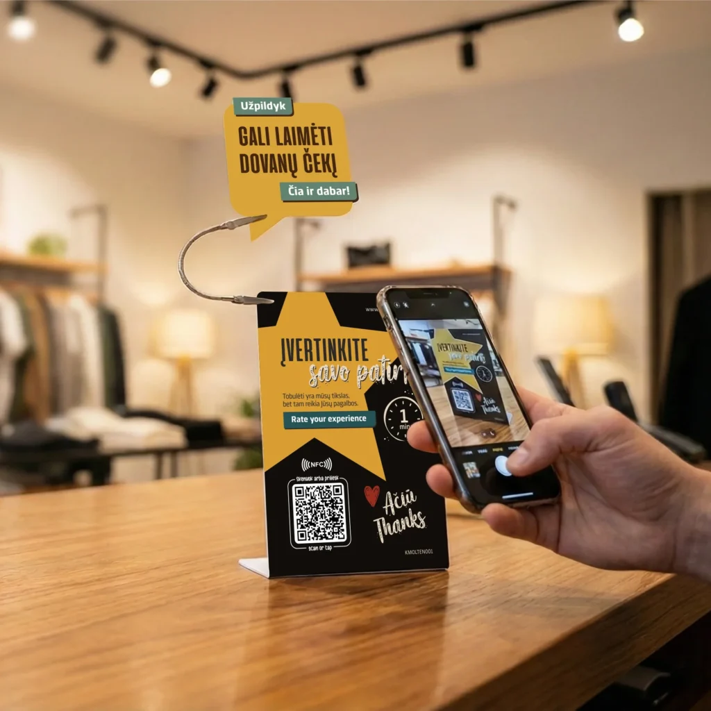 You set up the stand - the system does the rest. Customers see the lottery, they respond willingly, and you get more good feedback, fewer public complaints and a clearer picture of what to fix.